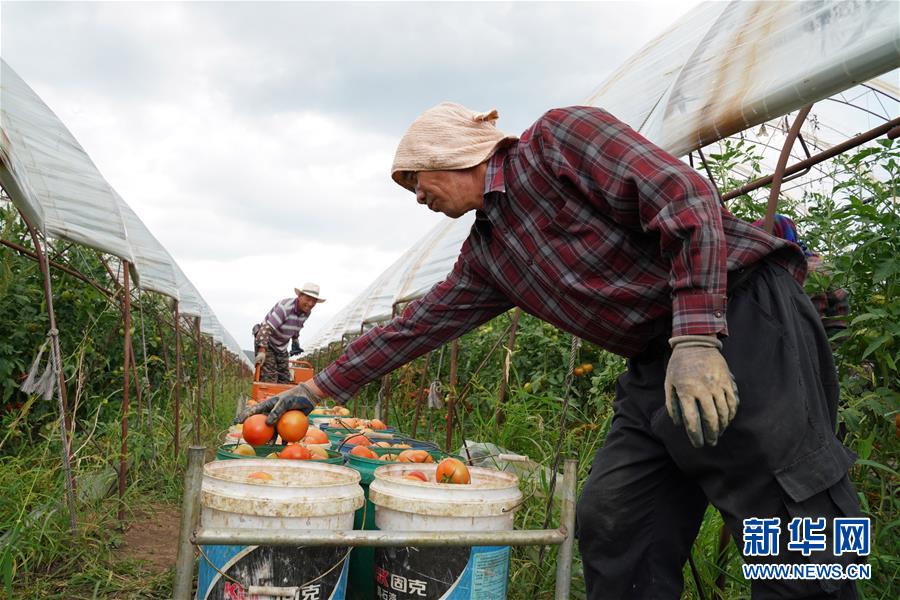 8月11日,在寧安市慶雨蔬菜專業(yè)合作社蔬菜產(chǎn)業(yè)園基地,工人把剛采摘下來的西紅柿裝入桶中準(zhǔn)備運(yùn)走。近年來,黑龍江省寧安市把設(shè)施蔬菜作為精準(zhǔn)扶貧的主導(dǎo)產(chǎn)業(yè)來抓,組織吸納貧困戶貸資加入產(chǎn)業(yè)合作社,帶動(dòng)貧困戶脫貧增收。寧安市將全市500余戶貧困戶的小額信貸資金集中投放到寧安市慶雨蔬菜專業(yè)合作社,建設(shè)蔬菜產(chǎn)業(yè)園基地,在帶動(dòng)貧困戶脫貧增收的同時(shí),壯大合作社蔬菜產(chǎn)業(yè)。新華社記者王建威攝。