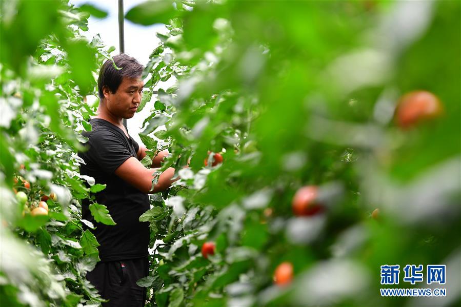 8月11日,在甘肅省臨夏回族自治州臨夏縣先鋒鄉(xiāng)前韓村,搬遷戶蔣元財(cái)在日光溫室內(nèi)采摘西紅柿。近年來,甘肅省臨夏回族自治州臨夏縣把易地扶貧搬遷作為打贏脫貧攻堅(jiān)戰(zhàn)的重要任務(wù),科學(xué)推進(jìn)易地扶貧搬遷和脫貧攻堅(jiān)工作。為了讓搬遷群眾能夠安居樂業(yè),當(dāng)?shù)卣⒅胤龀趾罄m(xù)產(chǎn)業(yè)發(fā)展,引導(dǎo)搬遷群眾發(fā)展日光溫室、布鞋加工、觀光農(nóng)業(yè)、特色種養(yǎng)殖等產(chǎn)業(yè),幫助搬遷群眾實(shí)現(xiàn)就近就業(yè)、拓寬增收渠道,確保搬遷群眾“搬得出、穩(wěn)得住、有事做、能致富”。新華社記者陳斌攝