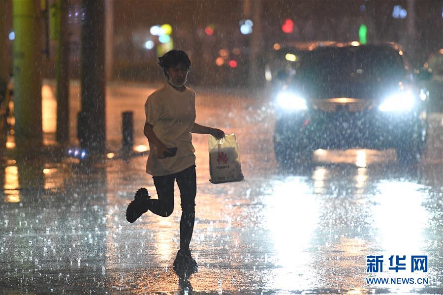 8月12日,北京市大興區(qū)亦莊鎮(zhèn),一名沒帶雨具的市民在雨中奔跑。新華社記者 彭子洋 攝