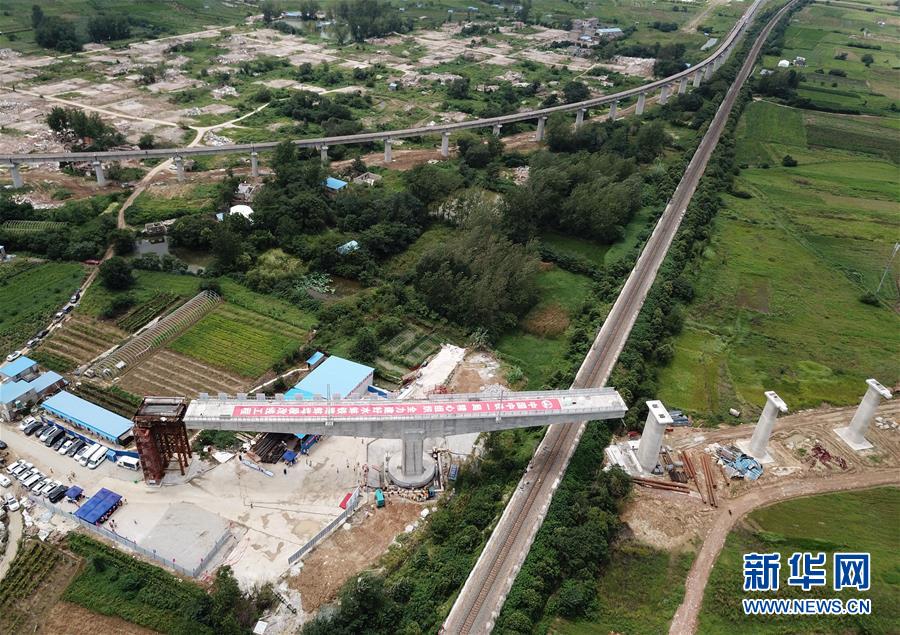 這是8月12日拍攝的水蚌鐵路蚌埠段改線工程東站疏解線特大橋跨越京滬鐵路上行線轉(zhuǎn)體梁轉(zhuǎn)體施工現(xiàn)場(無人機(jī)照片)。當(dāng)日,由中鐵一局承建的水蚌鐵路蚌埠段改線工程東站疏解線特大橋跨越京滬鐵路上行線64米T構(gòu)轉(zhuǎn)體梁成功實現(xiàn)轉(zhuǎn)體。新華社記者 劉軍喜 攝