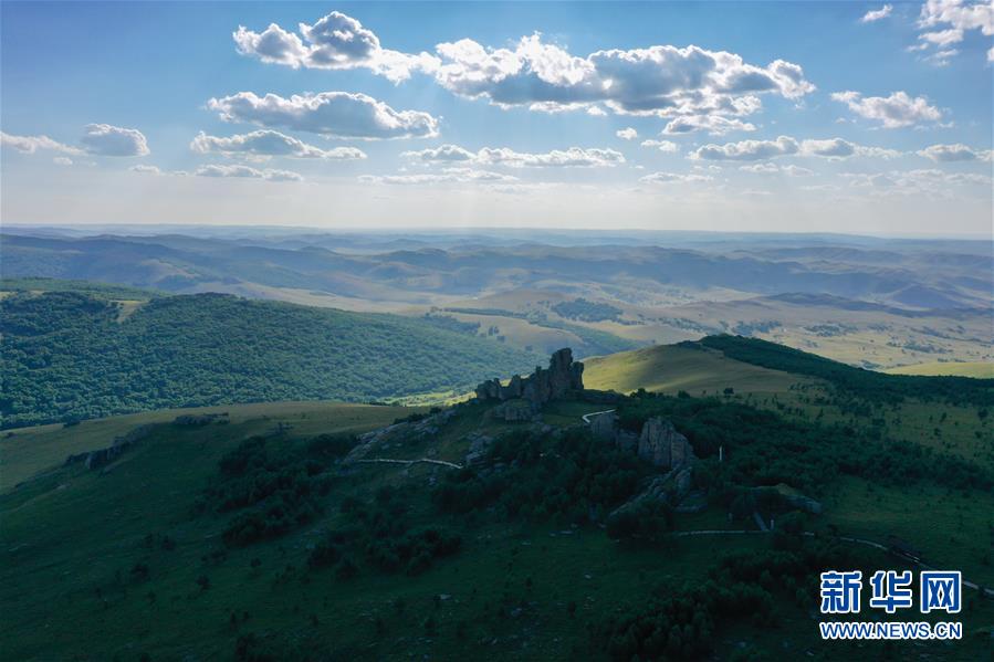 這是8月11日拍攝的克什克騰石陣景區(qū)風(fēng)景(無人機(jī)照片)。克什克騰旗位于內(nèi)蒙古自治區(qū)赤峰市西北部,境內(nèi)的湖泊、河流、草原、森林等自然景觀,讓人們流連忘返。新華社記者徐欽攝