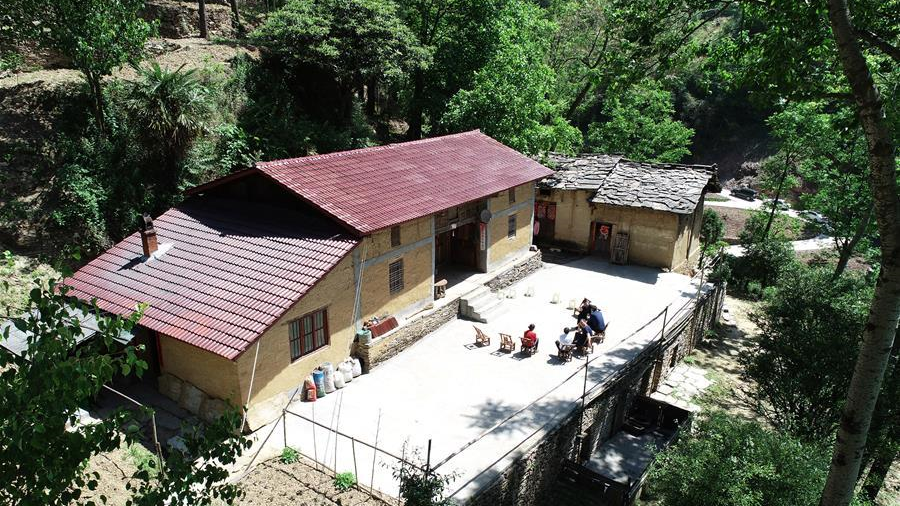 5月12日,浙江諸暨龍溪村的百歲老人蔡渭東在家中處理竹篾。
