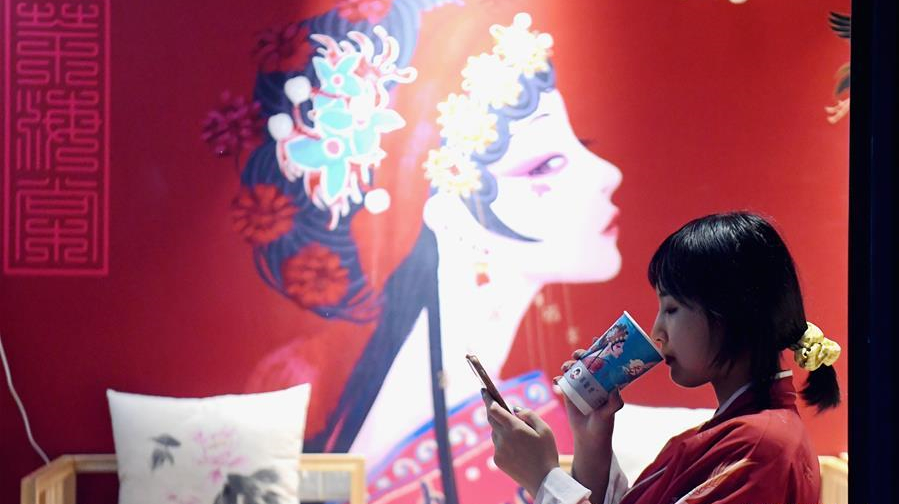 廣西恭城瑤族自治縣蓮花鎮(zhèn)紅巖村村民楊燕紅在家門口向客人推銷本地特產(chǎn)。