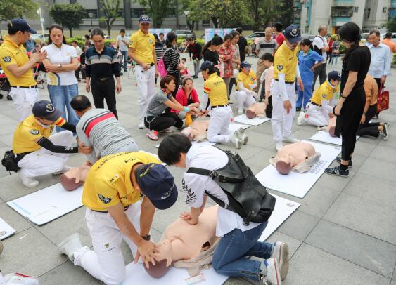 深圳市賽場救護(hù)隊的專業(yè)人員在現(xiàn)場為蓮花一村的社區(qū)居民普及了大眾急救技能,并指導(dǎo)大家進(jìn)行模擬心肺復(fù)蘇的演練,中老年朋友則享受了免費的體質(zhì)檢測服務(wù)。