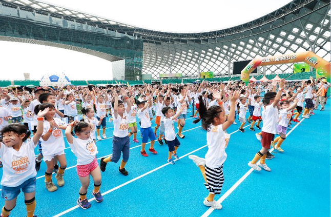 而在環(huán)球足球挑戰(zhàn)環(huán)節(jié),許多小選手是第一次接觸足球。通過(guò)數(shù)碼感應(yīng)裝置和小選手們佩戴的智能手環(huán),將帶球、頂球、射門(mén)等足球動(dòng)作實(shí)時(shí)反饋呈現(xiàn)運(yùn)動(dòng)結(jié)果,其樂(lè)無(wú)窮的項(xiàng)目讓孩子們一一挑戰(zhàn)停不下來(lái)!