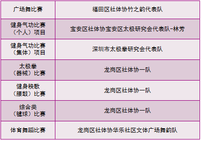 深圳市2018年第二屆社會體育指導員技能交流展示大賽各單項比賽一等獎獲獎名單