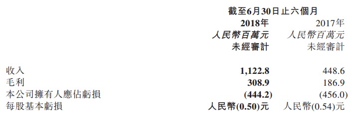 而伴隨這些動作之余,該公司2018年中期的業(yè)績也進(jìn)步好轉(zhuǎn)。期內(nèi),該收入同比增長150.3%至11.23億元人民幣(單位下同);毛利同比增長65.3%至3.09億元;股東應(yīng)占虧損同比收窄2.6%至4.44億元。