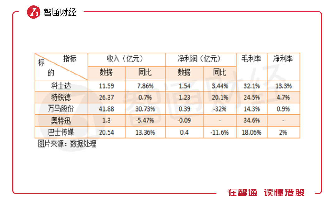 下游設(shè)備運(yùn)營商主要是充電樁運(yùn)營以及充電站的運(yùn)營,參與者的業(yè)績相對(duì)來說比中游要好很多。參與者中,包括科士達(dá)、特銳德、萬馬股份、奧特迅以及巴士傳媒,當(dāng)然有些公司除了做充電樁運(yùn)營之外也會(huì)存在其他業(yè)務(wù),整體來看,部分參與者還是存在正向增長的業(yè)績的,但整體的利潤率仍偏低。