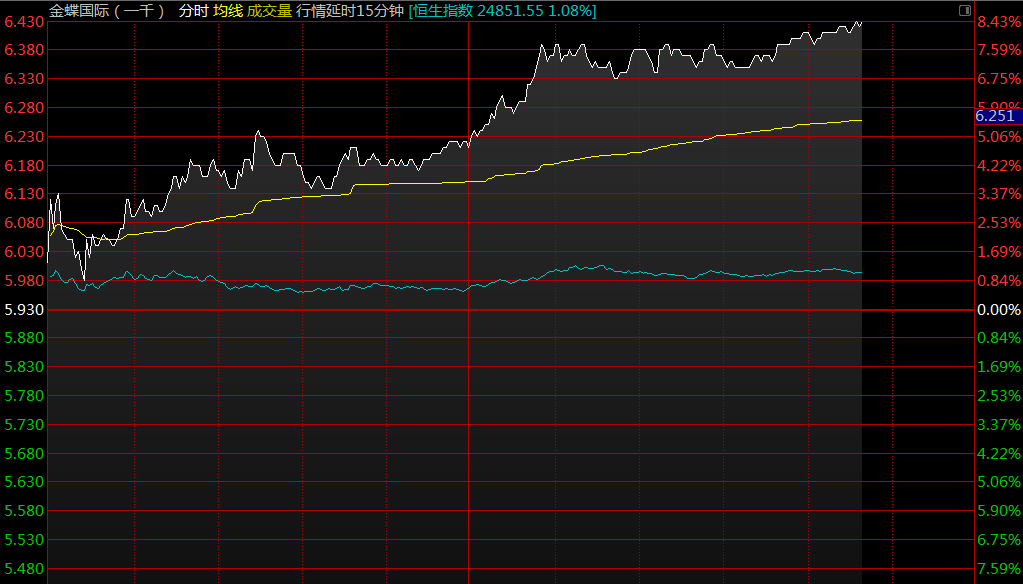 金蝶國(guó)際(00268)漲超7%花旗看高至10.1港元