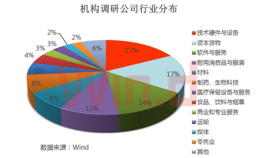 Wind統(tǒng)計顯示,10月22日以來,市場活躍度明顯提升,機構(gòu)也加大了對上市公司的拜訪頻率,有240多家公司接受了機構(gòu)調(diào)研,其中,有135家公司調(diào)研機構(gòu)數(shù)超過5家,從相關公司行業(yè)分布來看,技術硬件與設備最多有23家,占比17%,其次是資本貨物有22家,占比17%、軟件與服務、耐用消費品與服裝、材料行業(yè)公司數(shù)亦較多。隨著行情的轉(zhuǎn)暖,機構(gòu)對科技行業(yè)的關注度逐漸提升。