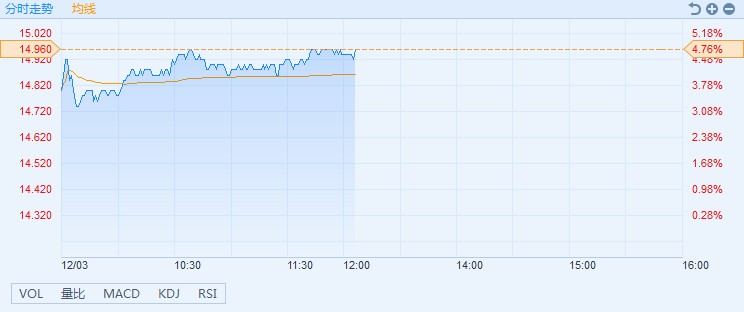 智通財(cái)經(jīng)APP獲悉,本屆G20峰會(huì)上,中美就經(jīng)貿(mào)問(wèn)題達(dá)成共識(shí),決定停止升級(jí)關(guān)稅等貿(mào)易限制措施。貿(mào)易摩擦的超預(yù)期緩和,為小米憑借商業(yè)模式創(chuàng)新和技術(shù)創(chuàng)新參與國(guó)際競(jìng)爭(zhēng)松綁,該股股價(jià)應(yīng)聲而漲。截至13時(shí)05分,漲4.76%,報(bào)價(jià)14.96港元,成交額4.03億。