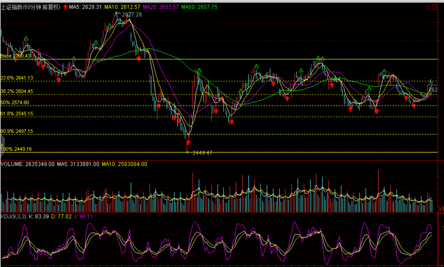 技術(shù)面:股指重返20日均線,量價(jià)配合,短期延續(xù)震蕩反彈;60分鐘滬綜指2640點(diǎn)、創(chuàng)業(yè)板1360點(diǎn)一線仍需震蕩消化,20周均線構(gòu)成本周反彈壓力。