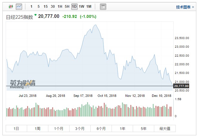 美聯(lián)儲(chǔ)如期加息,同時(shí)下調(diào)明年加息預(yù)測(cè),但仍不如市場(chǎng)預(yù)期的鴿派。受此影響,12月20日,日本日經(jīng)225指數(shù)低開(kāi)近1%,報(bào)20779.93點(diǎn)。