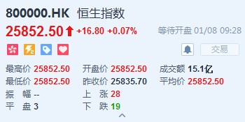 智通財經(jīng)APP獲悉,恒生指數(shù)開盤漲0.07%,報25852.5點。國企指數(shù)漲0.12%,報10135.79點。紅籌指數(shù)漲0.29%,報4144.06點。大市盤前成交15.1億港元。降準(zhǔn)過后市場仍心存顧忌,效果遜預(yù)期。需靜待中美貿(mào)易磋商結(jié)果。