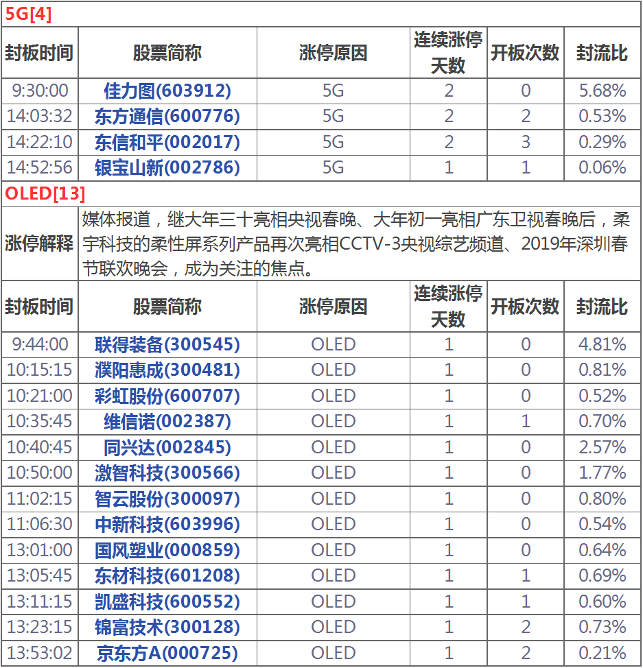 漲停分析:OLED概念受追捧醫(yī)藥板塊多股漲停
