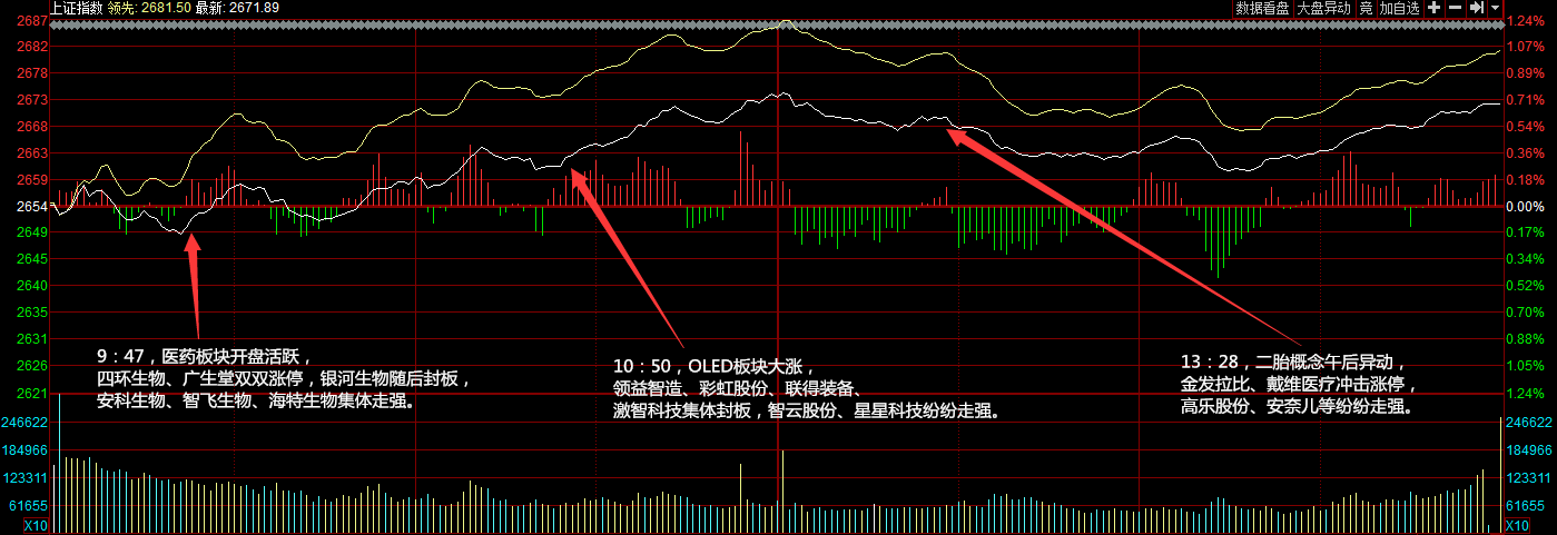 云財(cái)經(jīng)訊,兩市今日平開,隨后在醫(yī)藥、次新股的帶領(lǐng)下,創(chuàng)業(yè)板快速走強(qiáng),而主板表現(xiàn)較為弱勢(shì)。午后兩市稍有回落,工業(yè)大麻、柔性屏等板塊輪番拉升,市場(chǎng)總體賺錢效應(yīng)不錯(cuò)。個(gè)股漲多跌少,今日漲停75家,跌停1家。板塊普漲,OLED、醫(yī)藥、天津自貿(mào)區(qū)、氟化工等板塊漲幅居前。截止收盤,滬指報(bào)2671點(diǎn),漲0.68%;深成指報(bào)8010點(diǎn),漲1.15%;創(chuàng)業(yè)板指報(bào)1332點(diǎn),漲1.23%。兩市成交較前一交易日放量。