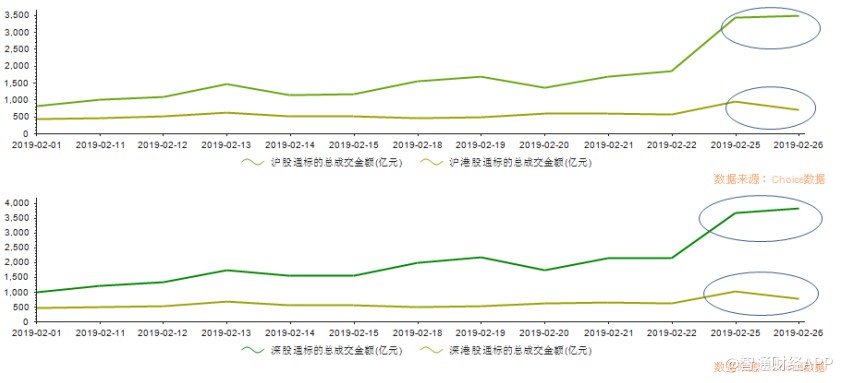 伴隨著股市上漲的,是兩地資本互通的熱度。據(jù)智通財(cái)經(jīng)APP統(tǒng)計(jì),北上資金方面,2019年2月,滬(深)股通標(biāo)的日均成交額分別為1663.55億、1997.6億;南下資金方面,滬(深)港股通日均成交額分別為556.31億、598.36億,均相較于其他月份顯著放大。