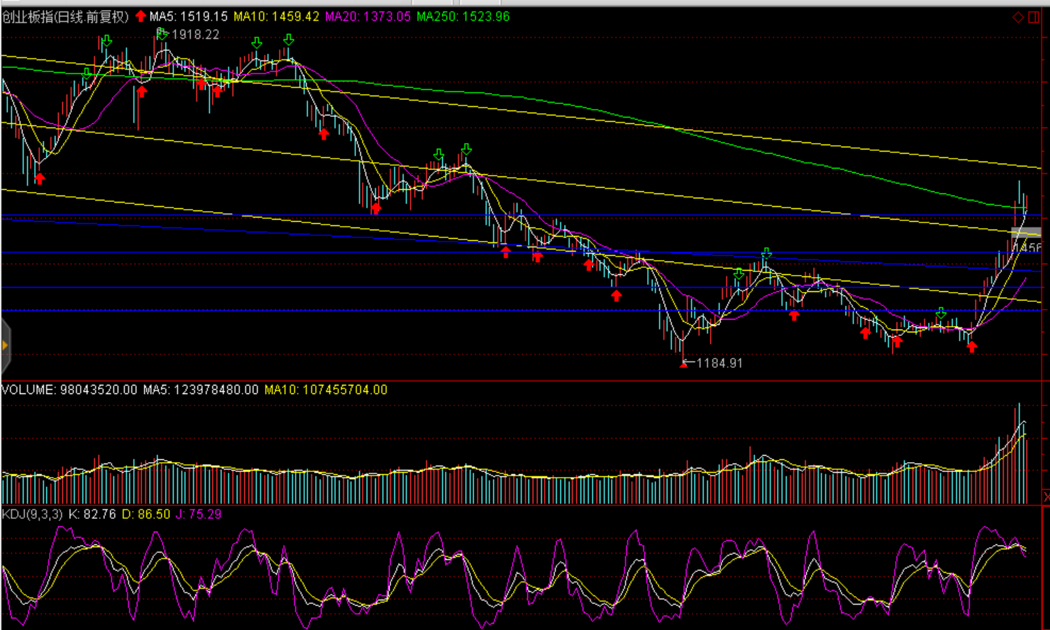 技術面:短期進入震蕩加劇,日線超買修復中,創(chuàng)業(yè)板短期仍有一定反彈空間,短期壓力1590點一線。