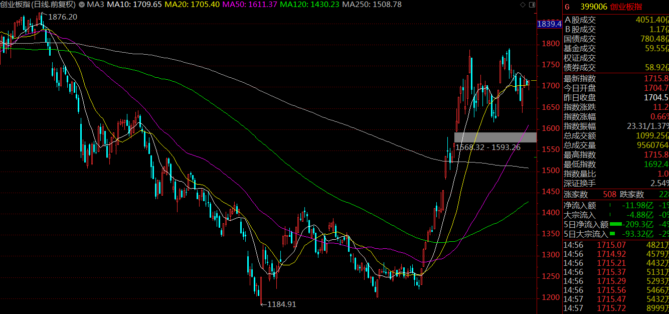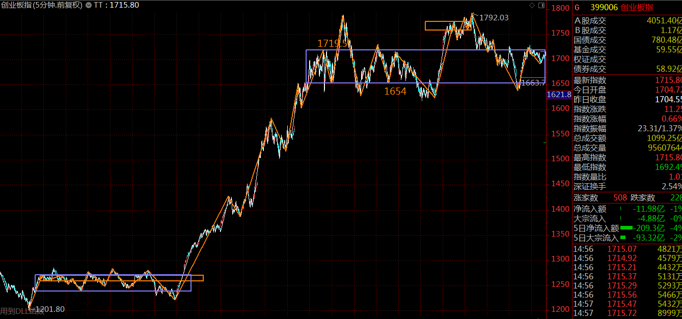 創(chuàng)業(yè)板這里走弱了已經(jīng),上周一、周二的調(diào)整打到了中樞下軌,這是一次警告,上拉后始終不能站上中樞上軌,是為弱勢,本周關(guān)注1654點的支撐,謹(jǐn)防第三類賣點的出現(xiàn)。