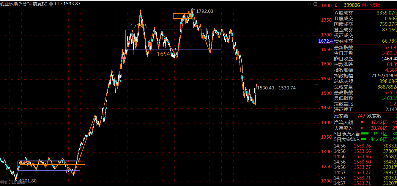 創(chuàng)業(yè)板這里走勢結(jié)構(gòu)粗暴直接的多,目前已遠(yuǎn)離上方的三十分鐘中樞,壓力位在上方中樞下沿1616點附近,空間較大。相對來說,短期小票走勢可能會強(qiáng)一些。