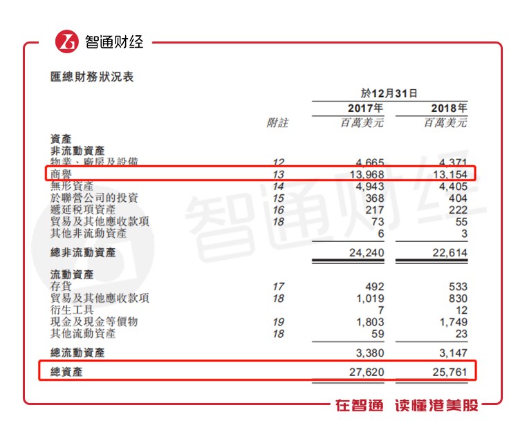 頻繁的收購(gòu)使百威亞太積累了非常龐大的商譽(yù)規(guī)模,招股書顯示,2017年和2018年,公司非流動(dòng)資產(chǎn)中商譽(yù)分別為139.68億元和131.54億元,其中2018年的商譽(yù)占總資產(chǎn)比重為51.06%。
