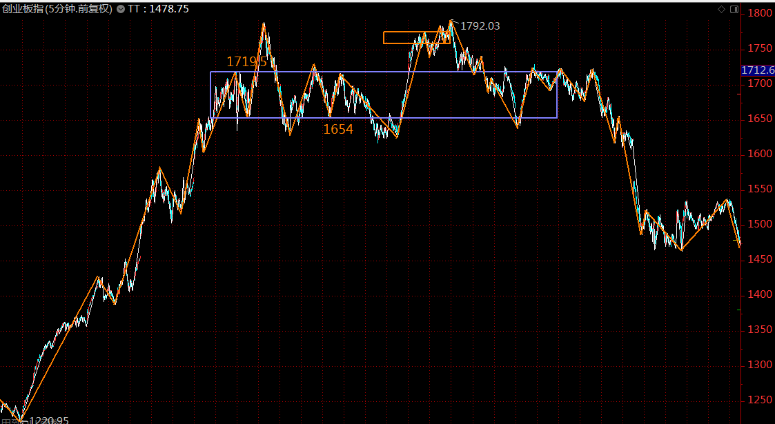 同級別分解后,創(chuàng)業(yè)板指數(shù)這里也進入了4月8日開始的五分鐘級別下跌趨勢最后一段,周一再次探底后,可全面轉入進攻模式。