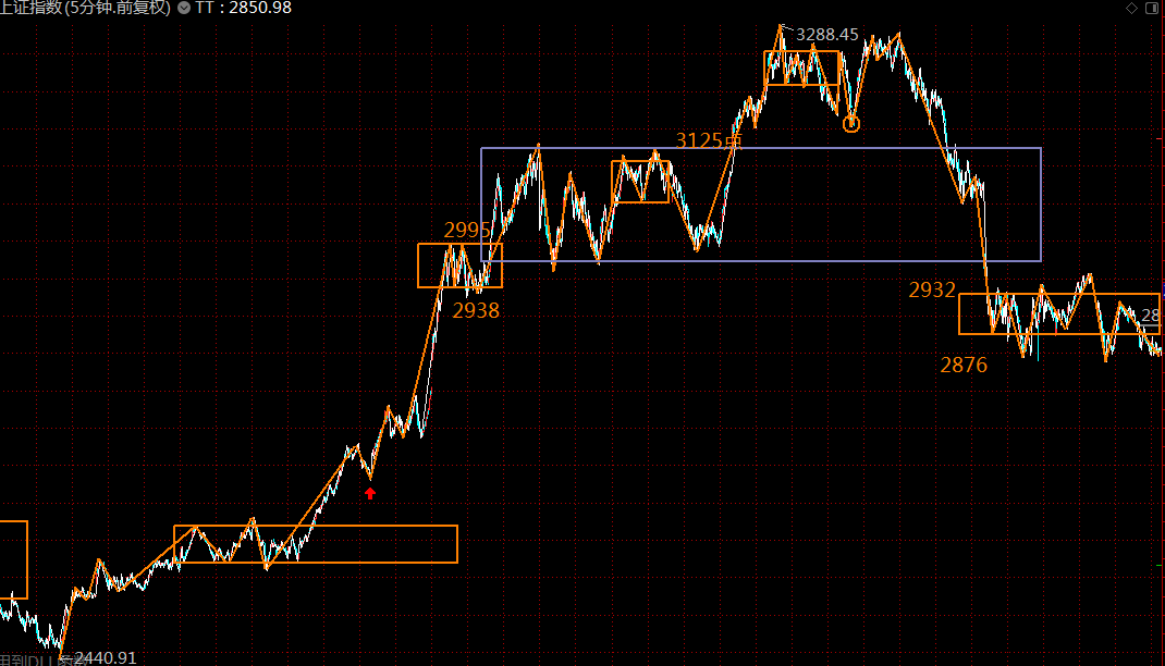 下圖為上證指數(shù)五分鐘級(jí)別走勢(shì)結(jié)構(gòu),第三類賣(mài)點(diǎn)已過(guò),第一類買(mǎi)點(diǎn)正在構(gòu)建中,預(yù)計(jì)最差的情況,周一周二即可走完這波調(diào)整走勢(shì),第一目標(biāo)回補(bǔ)上方3050處的貿(mào)易戰(zhàn)缺口。