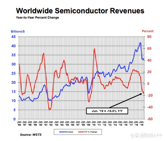 SIA總裁兼執(zhí)行長John Neuffer在聲明中指出,2019年上半年,全球半導(dǎo)體銷售仍處于下滑趨勢,同比下滑14.5%。(陳雨)