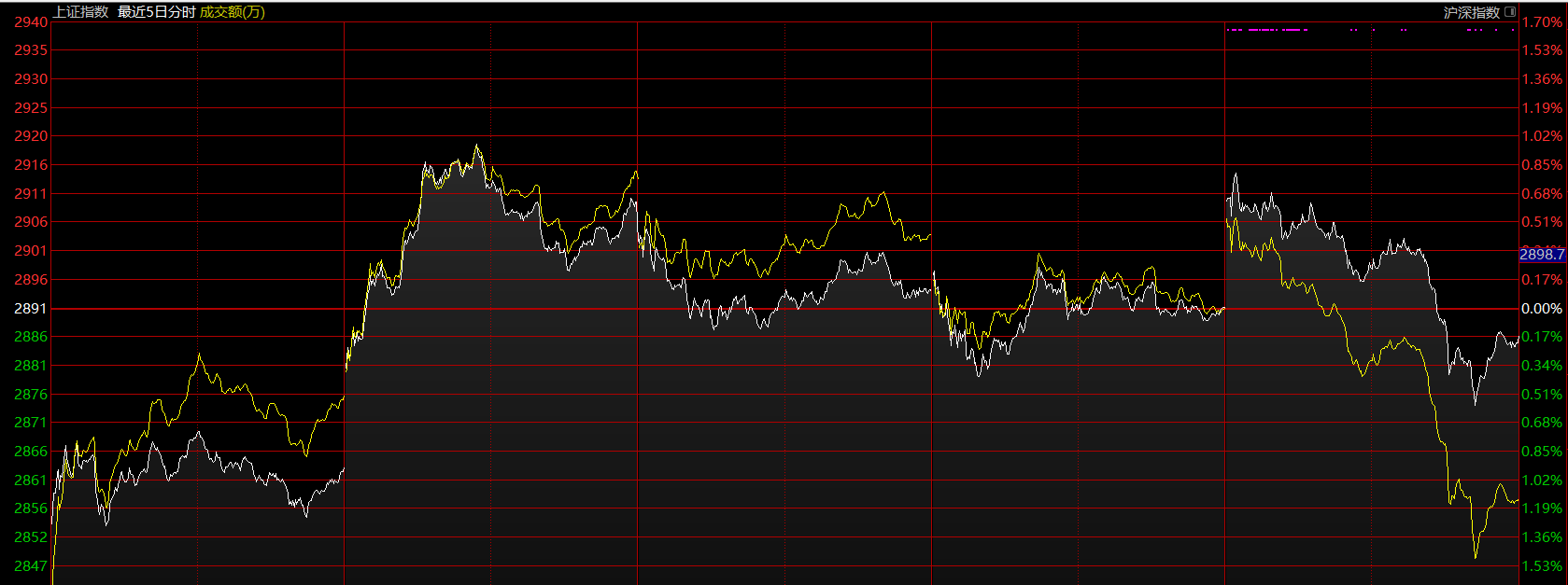 上證指數(shù)上周在這個位置做中樞擴展,將五分鐘上漲的第二個中樞擴展為三十分鐘級別的。這是強勢的一種表現(xiàn),市場在震蕩中消化拋壓。這里需關注大中樞的下軌2845點,跌破后,可能會帶來指數(shù)的二次探底,這將是絕佳的加倉點位,不跌破則市場隨時會上攻2950點。目前態(tài)勢下,應以持倉為主。