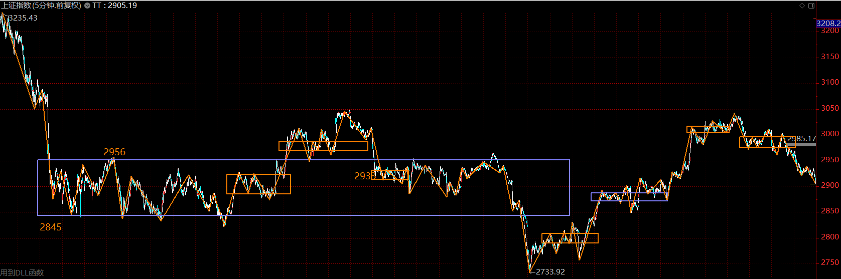 上證指數(shù)已跌回了大中樞內(nèi)部,目前最強支撐在中樞下軌2850附近。同時,從短線看,目前處于構(gòu)建五分鐘下跌趨勢第二個中樞的階段,即所謂的短線越跌越買的階段。投資者可稍微忽略指數(shù),著手分批布局三季報超預期個股,靜待反彈。