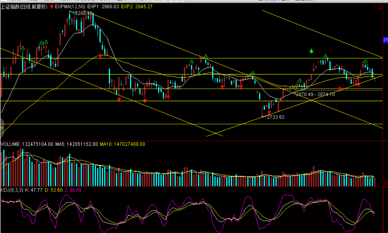 技術(shù)面:滬綜指暫獲支撐(自8月以來上升通道下軌),60分鐘KDI低位再度金叉,本周小周期反彈展開;預(yù)計反彈維持至周四,滬指壓力2980點一線。