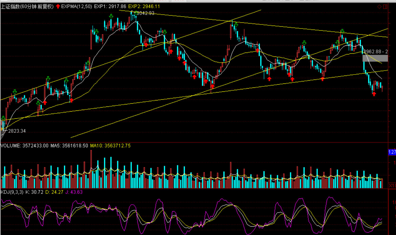 技術(shù)面:短期初現(xiàn)止跌信號(hào),本周兩個(gè)交易日關(guān)注能否收復(fù)收斂三角形下軌(滬指2935點(diǎn)一線),如周五收盤站穩(wěn)2935點(diǎn)則延續(xù)區(qū)間收斂三角形區(qū)間運(yùn)行。