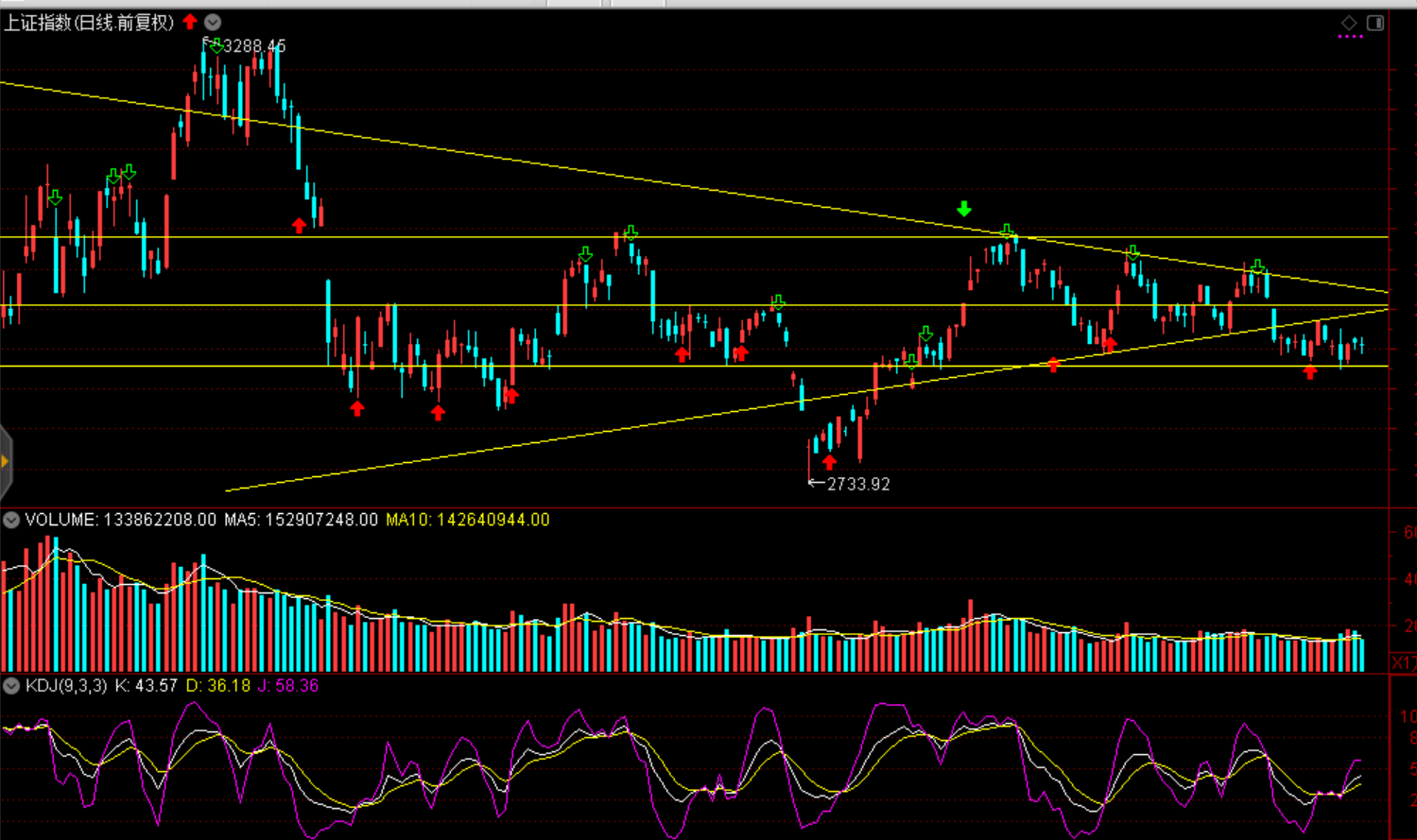 技術(shù)面:連續(xù)幾日縮量企穩(wěn),小周期反彈;9月16日以來(lái)滬指收斂三角形下軌面臨反彈壓力。