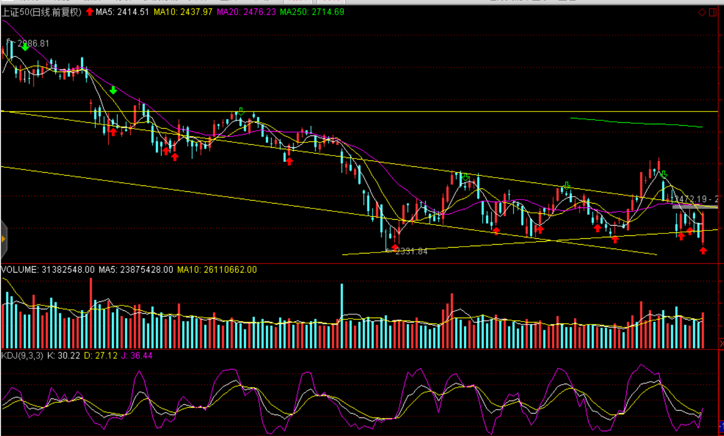 周一兩市股指全天震蕩下跌,股指均報收中陰線。上證50跌3.21%,創(chuàng)業(yè)板指跌1.01%。兩市僅成交2554億元,。盤面看白酒領跌大消費白馬,茅臺跌停引發(fā)蝴蝶效應,食品、家電、醫(yī)藥聯(lián)袂大幅下跌,資金集中流出消費白馬。