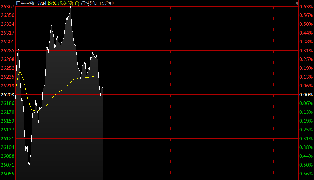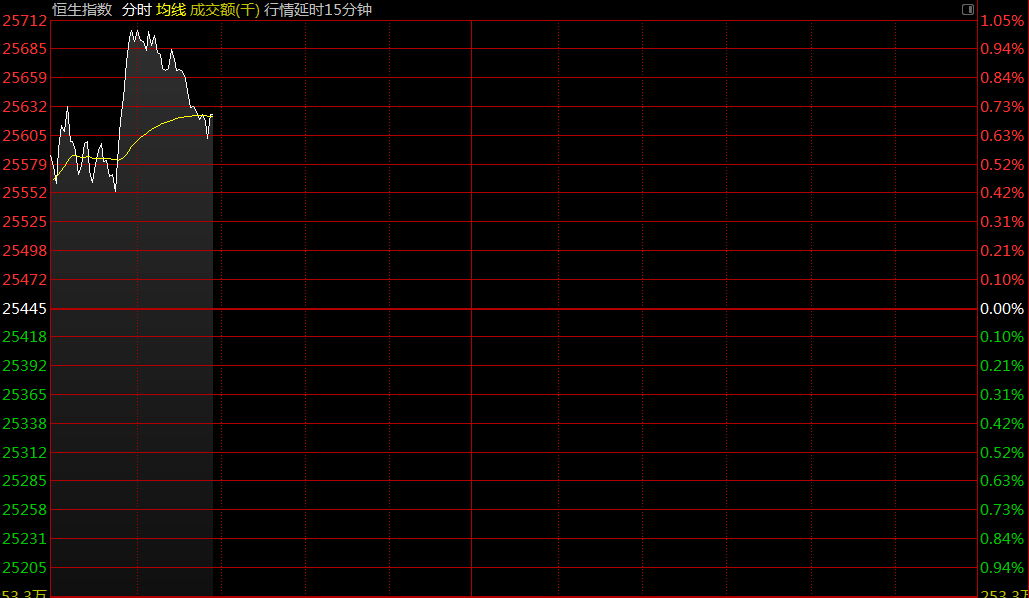 10月15日,恒生指數(shù)開(kāi)盤跌0.46%,報(bào)25683.59點(diǎn)。國(guó)企指數(shù)跌0.79%,報(bào)10218點(diǎn)。紅籌指數(shù)跌0.75%,報(bào)4125點(diǎn)。大市盤前成交21.42億港元。