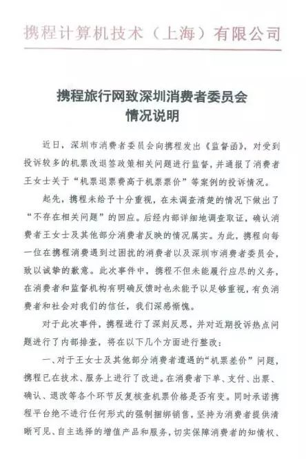 第一,?攜程公司從起初否認(rèn)存在相關(guān)問(wèn)題,到今天的公開(kāi)道歉并提出實(shí)質(zhì)性整改措施,從推責(zé)諉過(guò)到直面解決,深圳消委會(huì)對(duì)攜程公司前后態(tài)度和做法的轉(zhuǎn)變給予肯定。