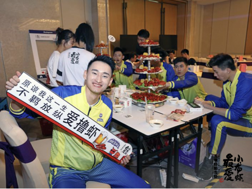 參加球迷見面會(huì)的排球運(yùn)動(dòng)員們?cè)谝姷较闼挚煽诘男↓埼r后,都忍不住立馬品嘗,對(duì)龍蝦的味道是贊不絕口,并主動(dòng)和小龍蝦共同合影留戀。