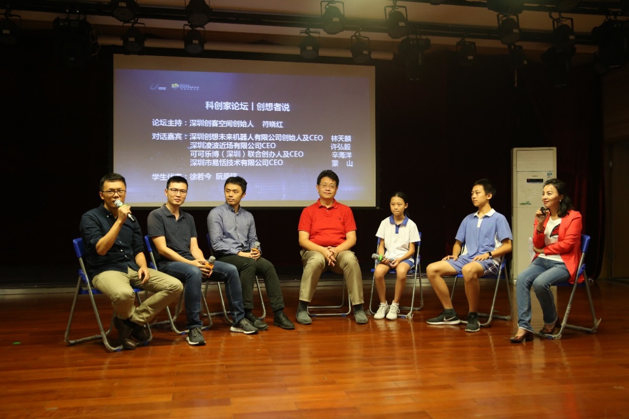 活動以“人工智能——科幻未來”為主題,邀請到了人工智能領(lǐng)域的科學(xué)家,優(yōu)秀創(chuàng)業(yè)者等多位嘉賓通過主題分享、論壇對話以及產(chǎn)品展示體驗等形式,給師生們帶來了一場人工智能的知識分享盛宴。香港中文大學(xué)深圳研究院眾創(chuàng)中心的人工智能創(chuàng)新團隊亮相本次活動,分別是致力于機器人操作系統(tǒng) (ROS)的產(chǎn)品化技術(shù)研發(fā)和生態(tài)建設(shè),為高校及企業(yè)提供 ROS課程及技術(shù)解決方案的“深圳創(chuàng)想未來機器人有限公司”;專注于 STEAM教育的教育科技,致力于透過靈感和科技的有機結(jié)合,將最新的理念和技術(shù)帶入 STEAM教育領(lǐng)域的“可可樂博(深圳)科技有限公司”;致力于AI語音領(lǐng)域技術(shù)研發(fā),利用優(yōu)于行業(yè)、準(zhǔn)確率大于99.5%的聲紋識別算法,將人工智能、生物辨識與復(fù)雜行業(yè)場景進行深度融合的“深圳市聲揚科技有限公司”。分別在活動中做了精彩的主題演講、學(xué)生互動及產(chǎn)品展示。