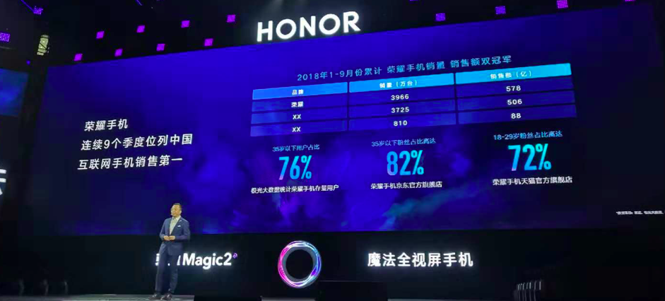 2018年,在全球智能手機(jī)市場(chǎng)增長(zhǎng)遇冷的大勢(shì)下,榮耀繼續(xù)乘風(fēng)破浪的亮眼表現(xiàn)。在國(guó)內(nèi)市場(chǎng),連續(xù)9個(gè)季度位列中國(guó)互聯(lián)網(wǎng)手機(jī)銷售第一,進(jìn)一步夯實(shí)互聯(lián)網(wǎng)手機(jī)第一品牌的地位。據(jù)賽諾數(shù)據(jù)顯示,2018年1-9月,榮耀手機(jī)以3966萬臺(tái)的銷量、578億元的銷售額,雙雙進(jìn)入中國(guó)手機(jī)市場(chǎng)的前五,這也是唯一入圍TOP5的互聯(lián)網(wǎng)手機(jī)品牌。同時(shí),榮耀在全球74個(gè)國(guó)家市場(chǎng)以榮耀模式縱深布局、深度耕耘,強(qiáng)勢(shì)進(jìn)入快速增長(zhǎng)通道。