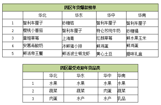在已經(jīng)上線的每日優(yōu)鮮的華南年貨頻道里,水果、肉蛋、酒水等品類占據(jù)“大半壁江山”,特別是高端水果,占比從去年的20%提升到50%,最受喜愛的有車?yán)遄印⑸仙虾炆疤墙?,此外受華南人民歡迎的年貨還包括雞蛋、箱裝牛奶和零食大禮包等。