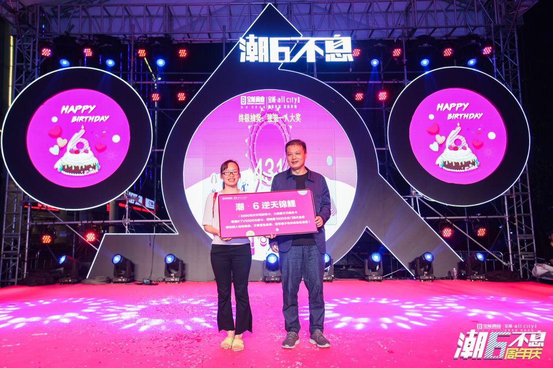 深圳新聞網(wǎng)2019年4月22日訊 4月20日,龍崗寶能·all city購物中心成功舉行了以“潮6不息”為主題的6周年生日慶典,寶能控股及寶能商業(yè)領(lǐng)導(dǎo)與眾多陪伴了寶能·all city六年的商戶代表、媒體代表及忠實顧客一起參加了本次慶典。活動當(dāng)晚不僅有豐富的獎品,還結(jié)合多個精彩的節(jié)目,打造了一場歡樂的盛宴。
