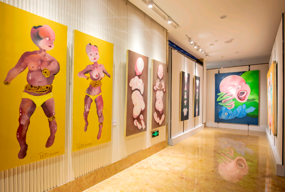 他從不把自己定位在某種藝術(shù)類別里,唯一能夠辨認(rèn)其創(chuàng)作概念的只有“當(dāng)代”一詞,他將自己靈魂深處的叛逆與當(dāng)代藝術(shù)的批判精神結(jié)合,通過鮮艷的色彩表達出來。畫面中那些擁有怪異表情、扭曲肢體,樣貌分崩離析的“人”,帶給觀眾的是獨樹一幟的視覺感觸,同時也呼應(yīng)著作者內(nèi)心的沖突與思考。