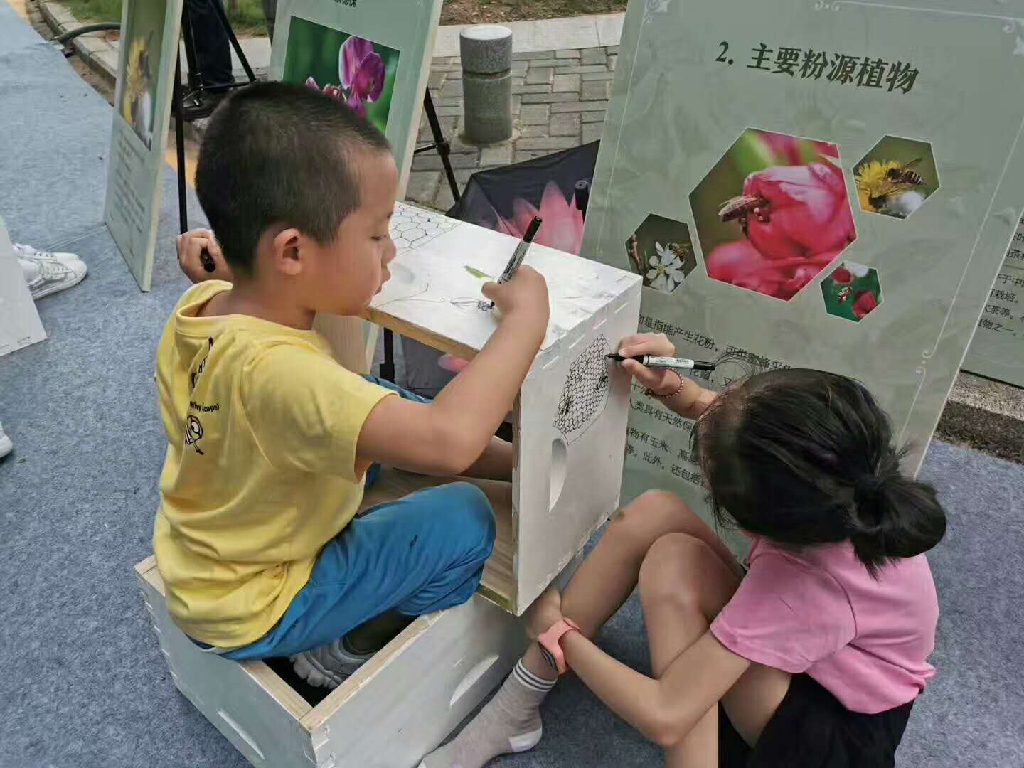 此次活動分為上下午兩場活動。上午的“蜜蜂科普宣傳及圖片展”,以圖文形式,展出蜜蜂的種類、蜜蜂家族分工、蜜蜂的生活習(xí)性、蜜蜂采蜜、蜜蜂繁衍、蜜蜂與環(huán)境等多方面的內(nèi)容,通過視覺化的感受讓孩子們充分了解蜜蜂的世界。下午的“蜜蜂與生態(tài)環(huán)境”科普講座中,專家們帶著孩子們探討蜜蜂生活習(xí)性、養(yǎng)蜂前沿科技、蜜蜂與生態(tài)環(huán)境、如何保護(hù)蜜蜂等問題。