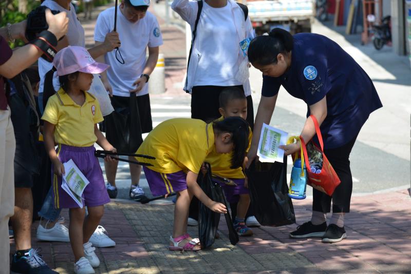 上午9點多,慈善小天使和志愿者們,從橫崗華明星幼兒園開始,沿著華西村和志健廣場等橫崗片區(qū),一路清撿道路垃圾和與路人合影宣導,向過往市民分發(fā)“垃圾不落地”資料,宣傳環(huán)保知識。特別支持的市民,小天使們派發(fā)了棒棒糖這一他們最好的感謝禮物。