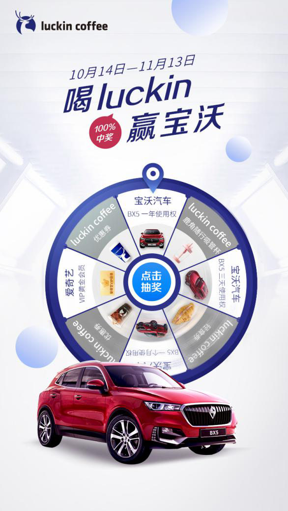 瑞幸咖啡攜手寶沃汽車推出“喝luckin贏寶沃”活動(dòng)