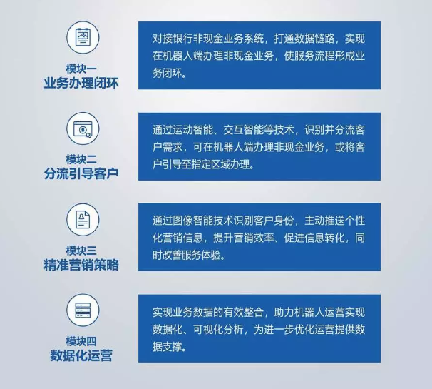 人工智能機(jī)器人與金融業(yè)務(wù)的完美結(jié)合,助力加速金融網(wǎng)點(diǎn)智能化建設(shè)、提升營銷效率、豐富金融營銷場(chǎng)景。