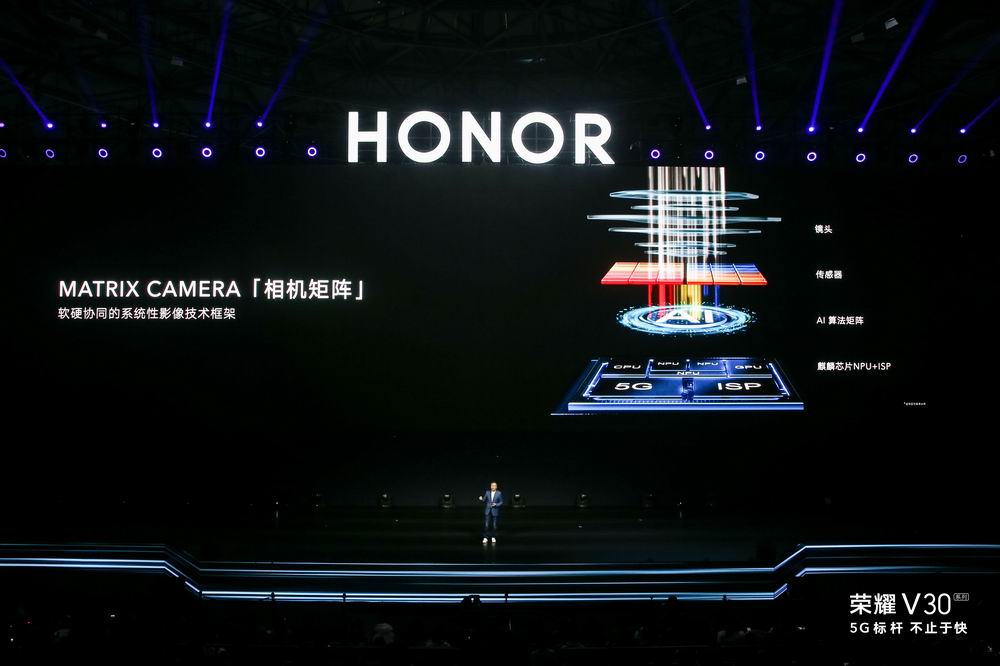 大幅提升的影像能力是榮耀V30在5G之外的另一大看點(diǎn)。此前在網(wǎng)絡(luò)上已經(jīng)有傳言的Matrix Camera突破性相機(jī)矩陣得到了趙明的證實(shí),這是一種軟硬協(xié)同的技術(shù)框架,通過分布式的RAW域AI算法矩陣,借助自研達(dá)芬奇架構(gòu)NPU和麒麟ISP強(qiáng)大處理能力,與聯(lián)合設(shè)計(jì)的光學(xué)系統(tǒng)深度融合,帶來綜合影像能力質(zhì)的提升。其中包括全方位的影像能力提升,例如可以媲美億級(jí)像素的超清模式;極暗光下的高感光能力與低噪點(diǎn)控制,ISO超感光能力高達(dá)409600;電影級(jí)五軸視頻智慧防抖;突破性的視頻HDR能力;以及此前已經(jīng)被曝光過的卓越暗光攝像能力。