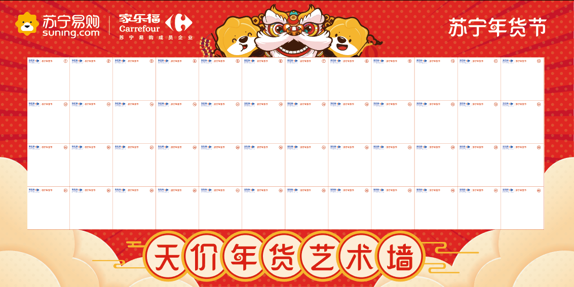 家樂福華南區(qū)相關負責人表示,“天價年貨藝術(shù)墻”結(jié)合當前最受關注的天價藝術(shù)這個熱門話題,融入春節(jié)傳統(tǒng)中國人講究的福氣、運氣等元素,讓參與者通過深度互動,享受寓購于樂的購物體驗。