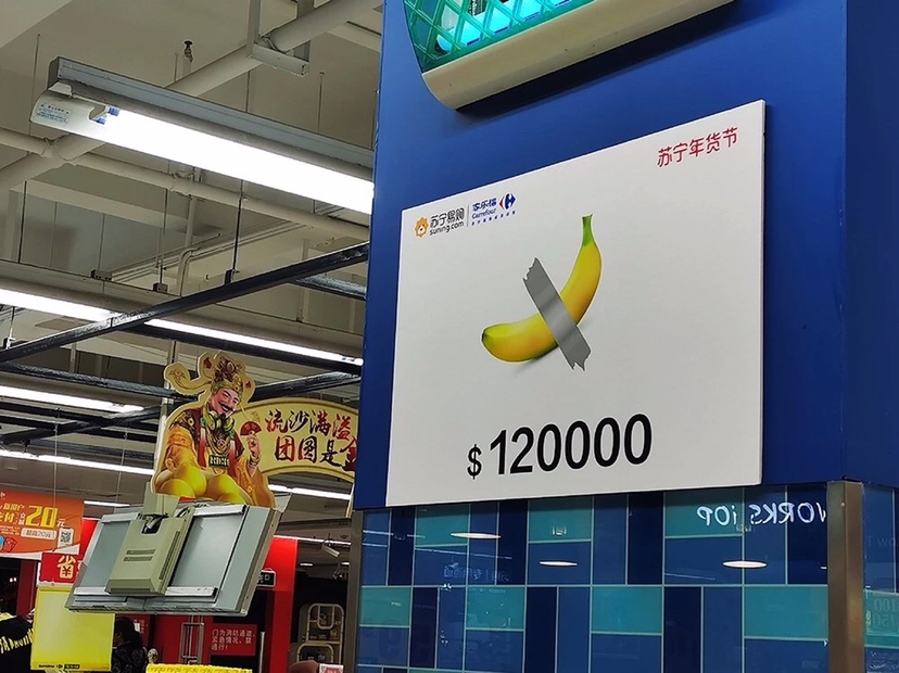 售價(jià)12萬(wàn)美元的香蕉你見過(guò)嗎?反正 小編 今天在家樂(lè)福 華南區(qū)門店 見到了!這可是從美國(guó)巴塞爾藝術(shù)展 引進(jìn)的行為藝術(shù)。 獲此靈感,蘇寧版“天價(jià)年貨” 應(yīng)運(yùn)而生!