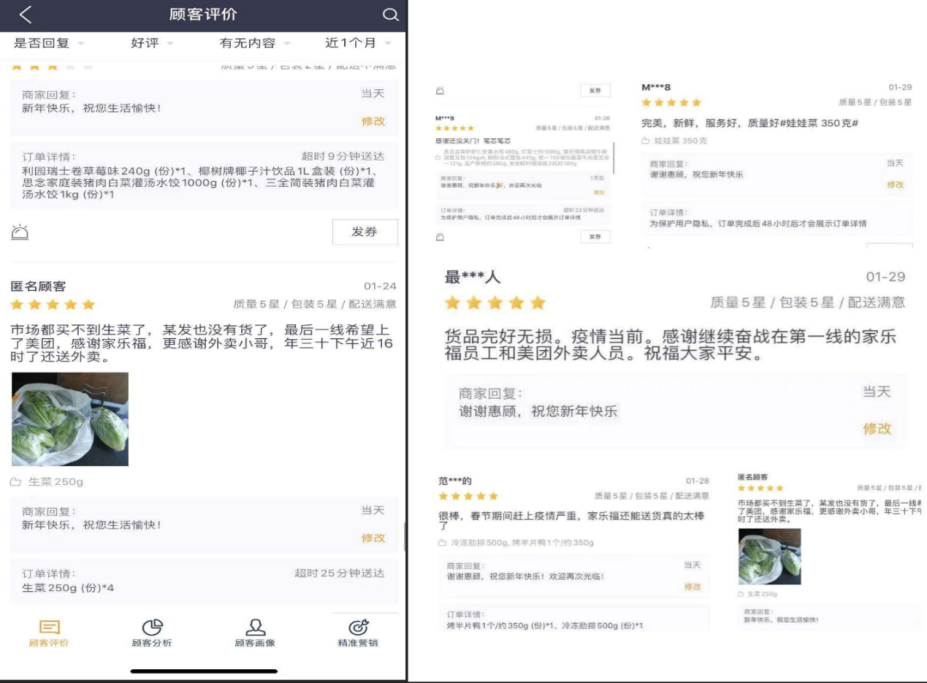 揀貨、核對(duì)訂單、打包、再次確認(rèn)商品無(wú)誤,在規(guī)定時(shí)間內(nèi)將商品給到外賣騎手……這是一項(xiàng)挑戰(zhàn)體力與腦力的“細(xì)致活”。為了維持家樂(lè)?!?公里內(nèi)、1小時(shí)速達(dá)的配送到家”服務(wù)順利運(yùn)作,每天,家樂(lè)福門店的電商主管還需要協(xié)調(diào)不同部門的值班員工通力合作。由于春節(jié)期間人員緊缺,超市一線員工幾乎每天都在與時(shí)間賽跑?!耙圆蛔儜?yīng)萬(wàn)變,在這場(chǎng)戰(zhàn)役中不斷的完善不斷的調(diào)整,每一分每一秒都是十足寶貴的。”黃福填說(shuō),雖然沒(méi)有回家過(guò)年,但看到顧客們一致的好評(píng)留言,自己心里非常高興。“顧客的好評(píng)就是對(duì)我們工作的最大鼓勵(lì)和認(rèn)可?!?/p>